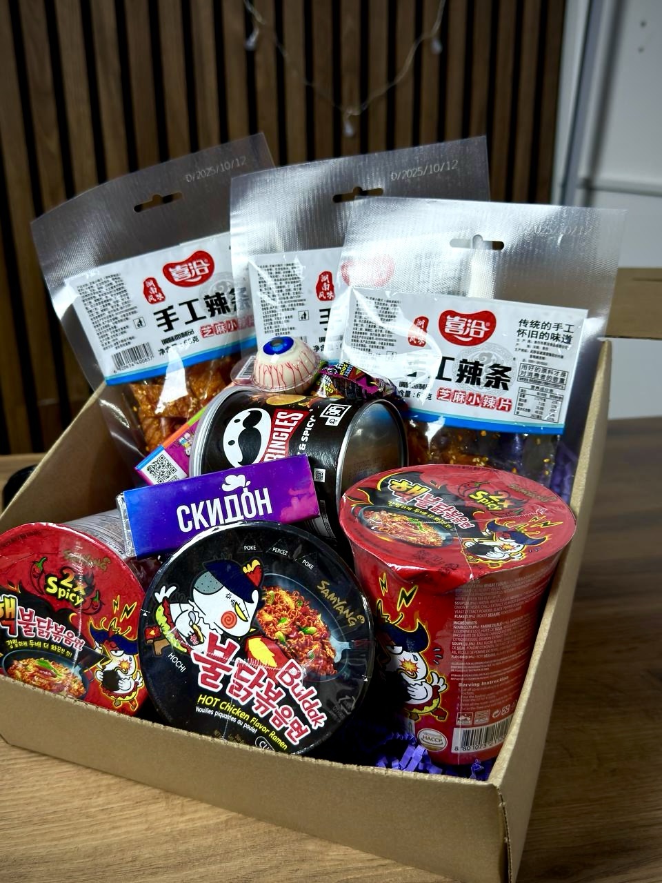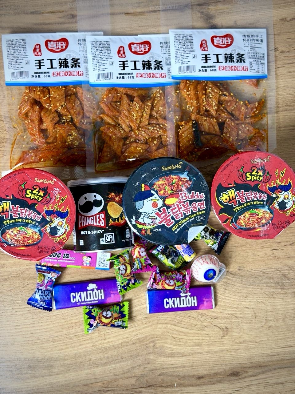 Острый вызов для смелых гастрономических авантюристов! ⚡️ Этот комплект точно проверит твой порог терпимости к острому! Питайся храбростью перед тем как открыть лапшу Samsang Buldak, закуси её пикантными чипсами Pringles и прими финальный удар острым соевым мясом. А чтобы немного охладиться - здесь есть леденцы, чтобы огонь в животе утихнул... ну почти 😈