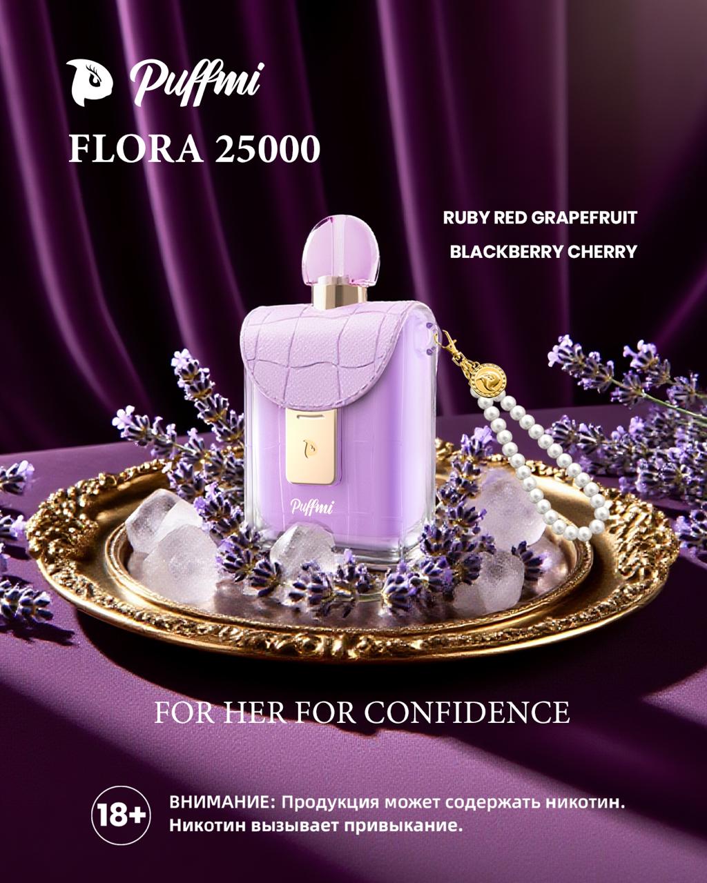 Откройте для себя Flora 25000 – духи нового поколения, которые подчеркнут вашу индивидуальность! Эта элегантная вещица станет стильным дополнением вашего образа и демонстрацией отменного вкуса. Безупречный дизайн, автономность 25000 затяжек без подзарядки и простота использования – никаких кнопок, лишь легкий ароматический пар. Идеально подойдет тем, кому важна каждая деталь и кто умеет превратить повседневность в произведение искусства.