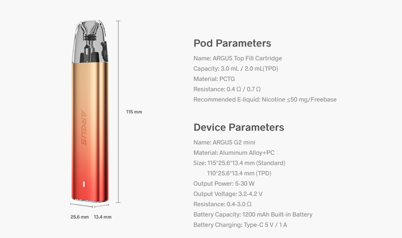 Совместим с Argus Pod и Argus Top Fill Pod.